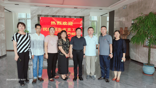 9月12日,民建河北省委省直工委十一支部主委刘义辉、委员梁惠杰等一行来到唐山市,与民建唐山市委路南区工委开展会务交流。在路南区工委主委赵首贺,副主委范树军及部分骨干会员的陪同下,调研组一行参观了会员企业唐山市新亚德波纹管有限公司。随后两地与会人员在公司会议室开...